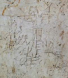 The Alexamenos Graffito is a Greek inscription on a wall of a building called the domus Gelotiana in Rome. The inscription reads: "Alexamenos sebete Theon", which translates to, "Alexamenos worships God". The inscription cannot predate the year 41, because Caligula acquired the house, and after his death (41 AD), it became used as a paedagogium. Scholars tend to date the inscription to the third century.