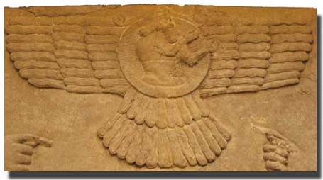 Acharya S thinks that the next two images and related Ancient Near Eastern iconography provided a motif for Jesus and the two thieves crucified on his left and right: